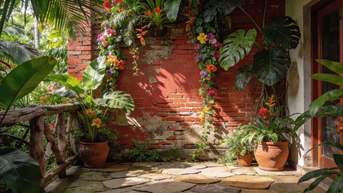 5 trików na ogród tropikalny – jak wykorzystać mur z surowej cegły?