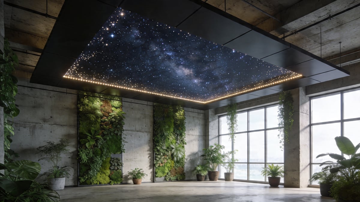 To właśnie tu wkracza biophilic design, czyli filozofia projektowania, która nie polega jedynie na dodaniu kilku roślin doniczkowych. To świadome i strategiczne włączanie natury do wnętrz na poziomie materialnym, sensorycznym i nawet duchowym. A co, gdybyśmy połączyli tę organiczną harmonię z surowym, męskim charakterem minimalizmu industrialnego? I dodali do tego iskrę magii w postaci własnego, gwieździstego nieba nad głową? Brzmi jak marzenie? To projekt, który udowadnia, że takie połączenia nie tylko są możliwe, ale tworzą przestrzenie o niezwykłej mocy.