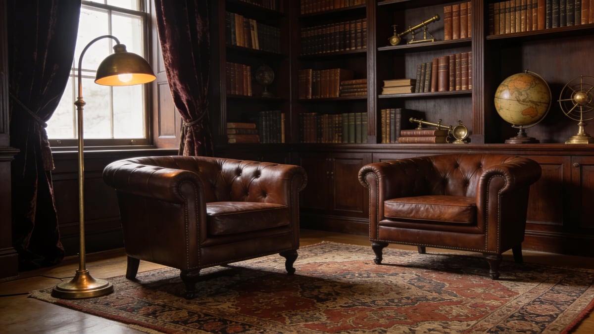 Żadna domowa biblioteka nie może się obyć bez wygodnego, zachęcającego do długich godzin lektury miejsca do siedzenia. Tutaj króluje niepodzielnie skórzany fotel klubowy. Jego charakterystyczne, nisko osadzone siedzisko, głęboka opcja, pochylone oparcie i podłokietniki są wręcz ikoniczne. Ale uwaga: nie każdy skórzany fotel pasuje do dark academia. Kluczowe jest poczucie autentyczności i czasu.