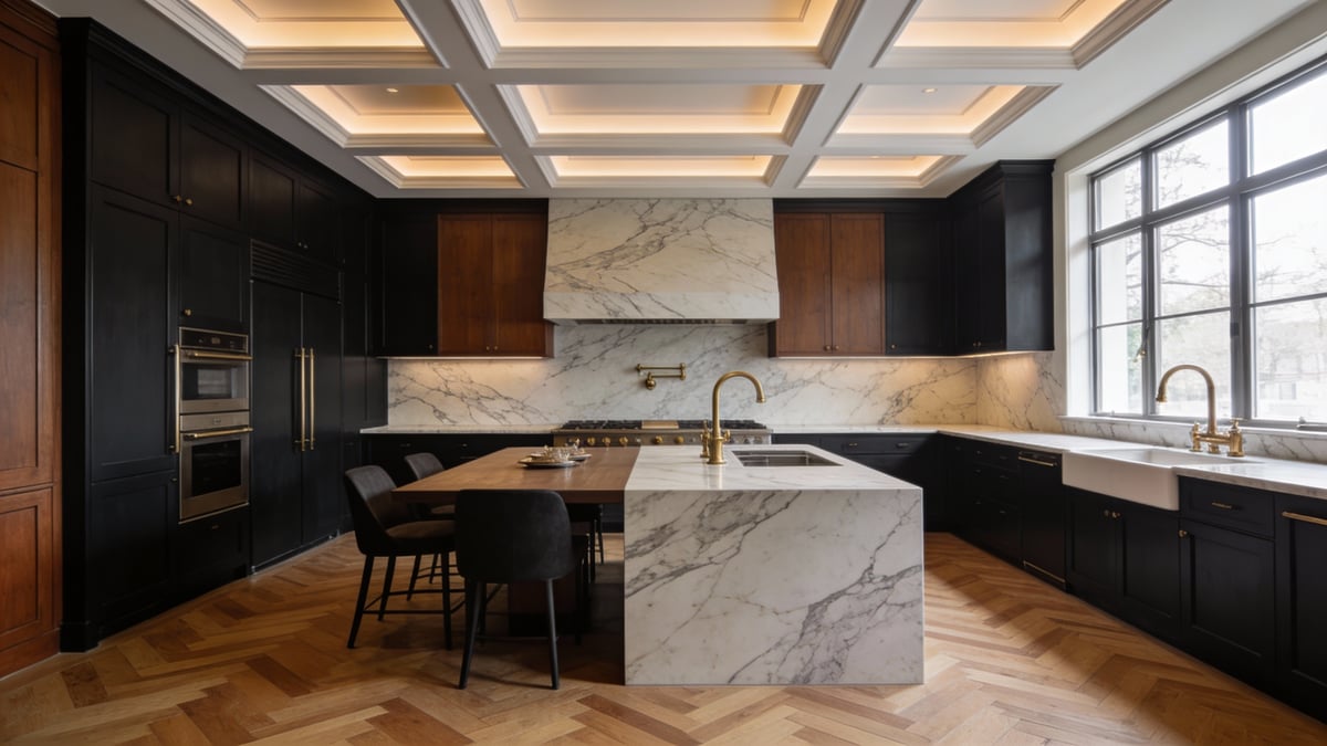 Dlaczego modern classic podbija serca projektantów i mieszkańców? Bo to styl, który nie przemija. Nie jest kaprysem sezonu, ale inwestycją w piękno, które zostanie z tobą na lata. W tym artykule odkryjesz pięć sekretów, które pozwolą ci zbudować taką właśnie, spektakularną kuchnię. Pokażę ci, jak wybrać i zastosować marmur, by nie wyglądał jak zimna galeria handlowa. Podpowiem, jak łączyć go z ciemnymi frontami i ciepłym drewnem podłogi w jodełkę. Zdradzę, dlaczego złota armatura to już nie kicz, a znak rozpoznawczy wnętrz premium. Przejdziemy przez kluczowy układ z wyspą i jadalnią, aż po magiczny efekt podświetlanego sufitu kasetonowego. To będzie twoja kompletna mapa drogowa do stworzenia kuchni marzeń.