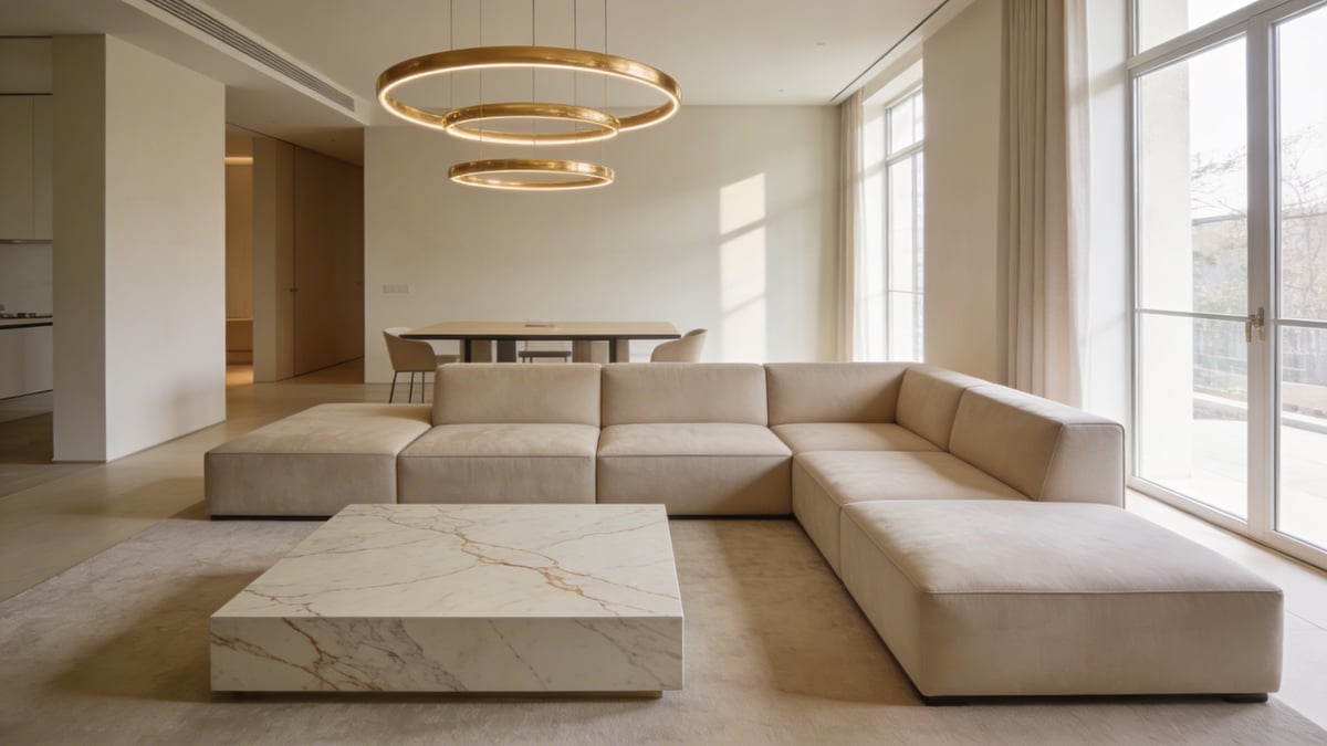 Zastanawiasz się, jak pogodzić minimalistyczną czystość form z przytulnością i ciepłem? Jak sprawić, by duża, 215-metrowa strefa dzienna nie stała się zimną, hotelową halą, ale pełną charakteru przestrzenią do życia? Kluczem jest mistrzowskie operowanie subtelną paletą barw, teksturą i światłem. W tym artykule odkryjesz pięć fundamentalnych zasad, które stoją za sukcesem tej aranżacji. Pokażemy ci, jak wybrać i zaaranżować beżową sofę modułową, jak dobrać i rozmieścić złote lampy ringi do salonu oraz jak wkomponować marmurowe stoliki kawowe w całość. Przeanalizujemy też, jak płynnie połączyć nowoczesny salon z jadalnią, tworząc spójną, wielofunkcyjną przestrzeń. To nie tylko inspiracje – to gotowy plan działania na twoją własną, luksusową strefę relaksu.