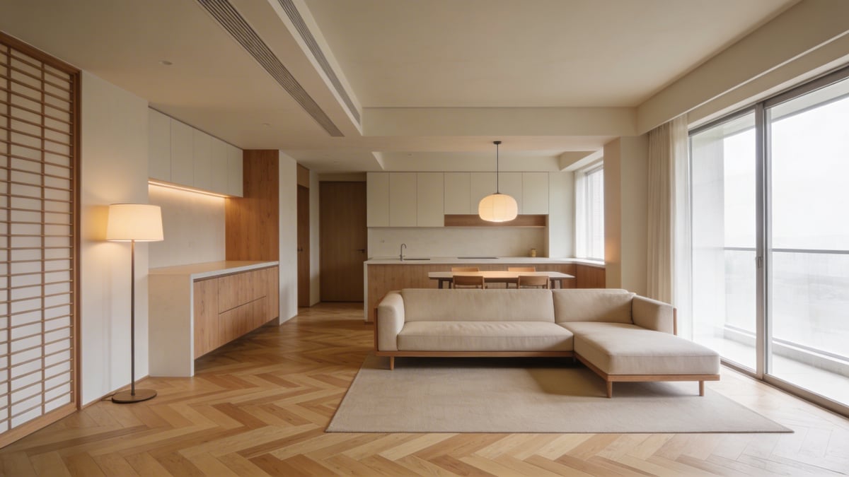Styl japandi czerpie pełnymi garściami z japońskiego umiłowania do porządku i funkcjonalności. Przestrzeń musi „pracować” i płynnie wspierać codzienne rytuały. Dlatego tak popularnym rozwiązaniem jest nowoczesny salon z aneksem kuchennym. To nie tylko moda, to pragmatyzm. Chodzi o stworzenie otwartej, wspólnej strefy, gdzie życie rodzinne toczy się bez sztucznych barier.