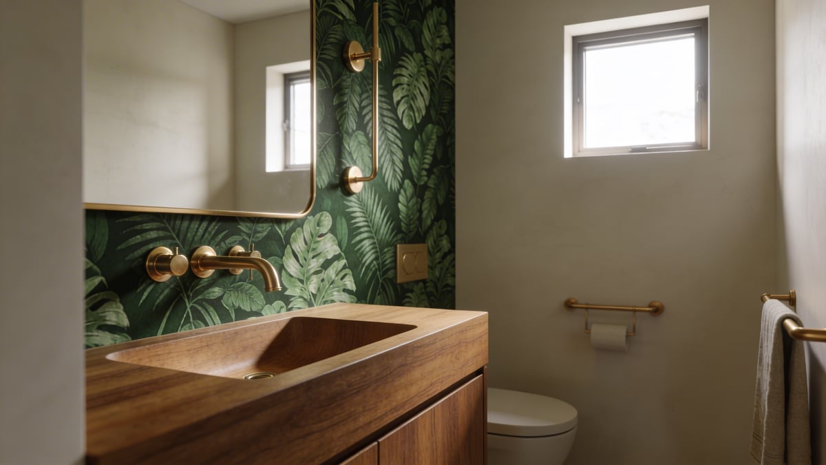 Zastanawiasz się, jak tchnąć duszę w swoją małą, nieco anonimową toaletę gościnną? Marzysz o przestrzeni, która w mgnieniu oka wywoła efekt „wow” u twoich znajomych, ale nie wiesz, od czego zacząć? Często słyszymy, że małe łazienki i toalety to przestrzenie wyłącznie funkcjonalne, gdzie liczy się tylko czystość i podstawowe wyposażenie. To jeden z największych mitów w aranżacji wnętrz. To właśnie te kompaktowe pomieszczenia dają niesamowitą szansę na odważny, eksperymentalny projekt, który byłby zbyt przytłaczający w dużym salonie czy sypialni. A jeśli powiem ci, że sekretem luksusowego klimatu może być… zielona tapeta w łazience? Tak, ten sam odcień, który kojarzymy z eleganckimi salonami, w małym wnętrzu działa jak magiczny eliksir, dodając głębi, charakteru i niespodziewanego poczucia przestronności. Połączenie jej z ciepłem drewna i blaskiem złotej armatury to przepis na aranżacyjny hit.